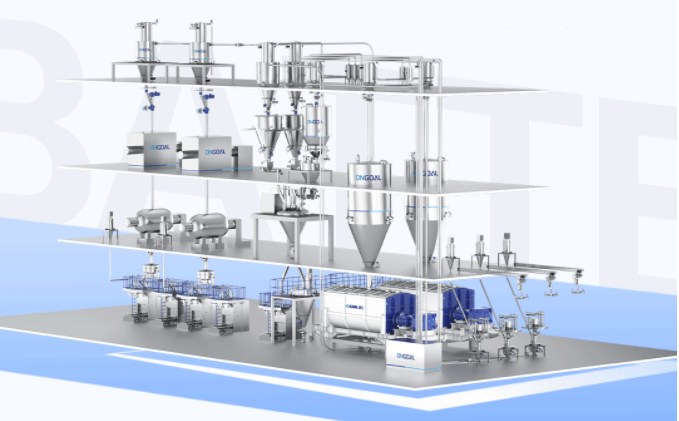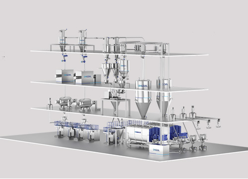 我們從解包投料、儲存破拱、氣力輸送、計(jì)量配料到混合攪拌的整個(gè)工藝流程,全方位多角度考慮生產(chǎn)的潔凈、便利與安全,為客戶提供一整套食品級原料處理一站式解決方案。
